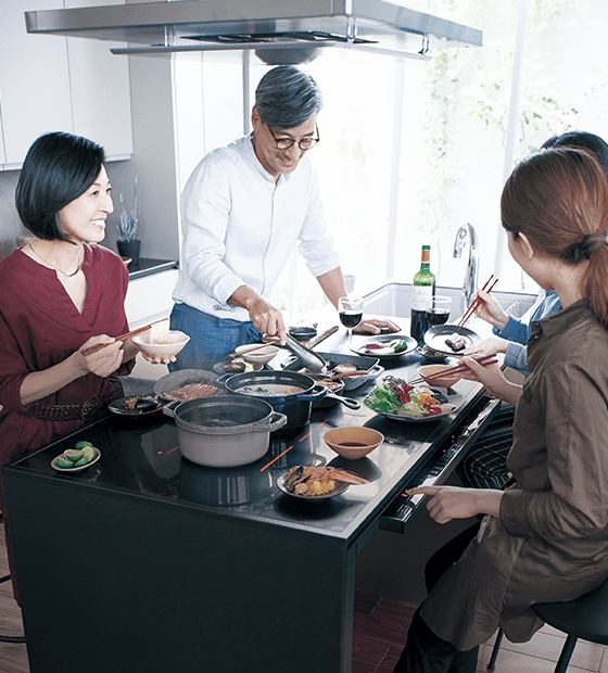 かつての間取りは、お客様を迎えるために恥ずかしくない「箱」という考えがベースにありました。それが次第に、家族の一体感を重視するように変わったのです。この流れを受けて登場したのが対面キッチン。「家族を身近に感じながら料理したい」という女性のニーズを踏まえたものでした。