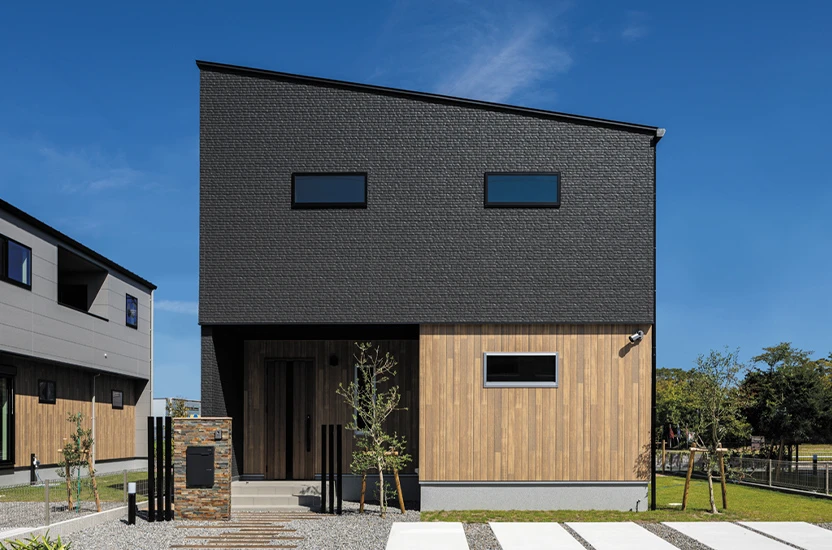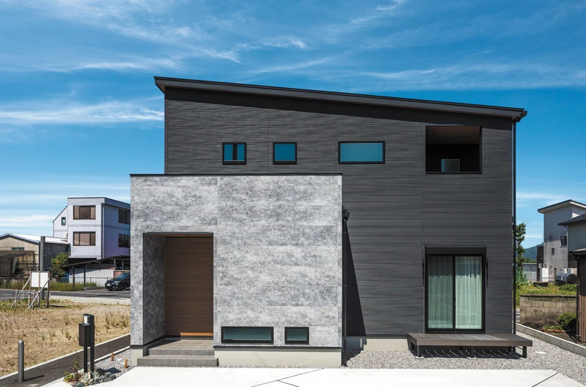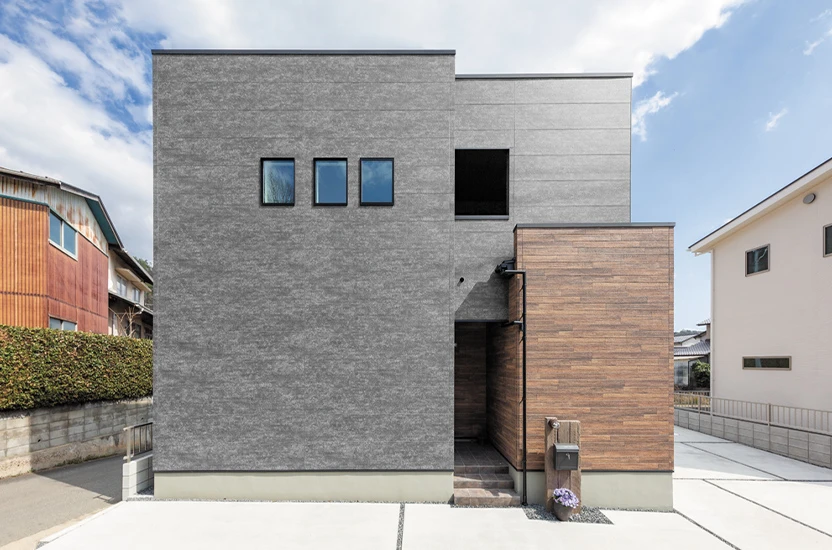 外観の印象を大きく左右するのが、外壁材の「デザイン・色・質感」。中でも最近は、光の当たり方や陰影の出方、手仕事のような風合いなど、“ナチュラルな質感”を感じさせる外壁材が注目されています。外観全体はフラットでミニマルなフォルムにしつつ、素材感で奥行きと表情を加えるのがトレンドです。