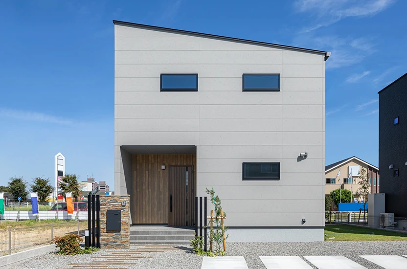 外観は、素材や色だけでなく家の“カタチ”そのものによっても大きく印象が変わります。屋根の形状や建物のプロポーションに加え、開口部(窓)の取り方や配置バランスが、外観全体の“顔つき”を決める要素に。近年は、箱型・片流れ屋根などのシンプルな形状をベースに、窓の配置や形でアクセントを加える「整った美しさ」を意識したデザインが主流となっています。