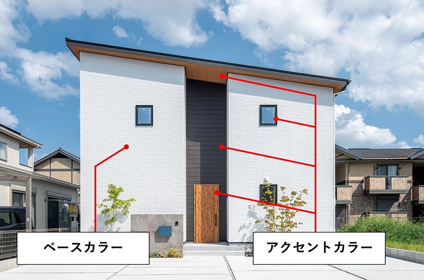 外壁や屋根に使用する色は「ベースカラー」と「アクセントカラー」の組み合わせによって統一感と個性を生み出します。外観に用いる色数は3色までが目安とされ、同系色でまとめることで調和の取れた仕上がりになります。