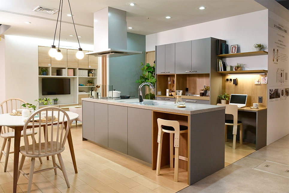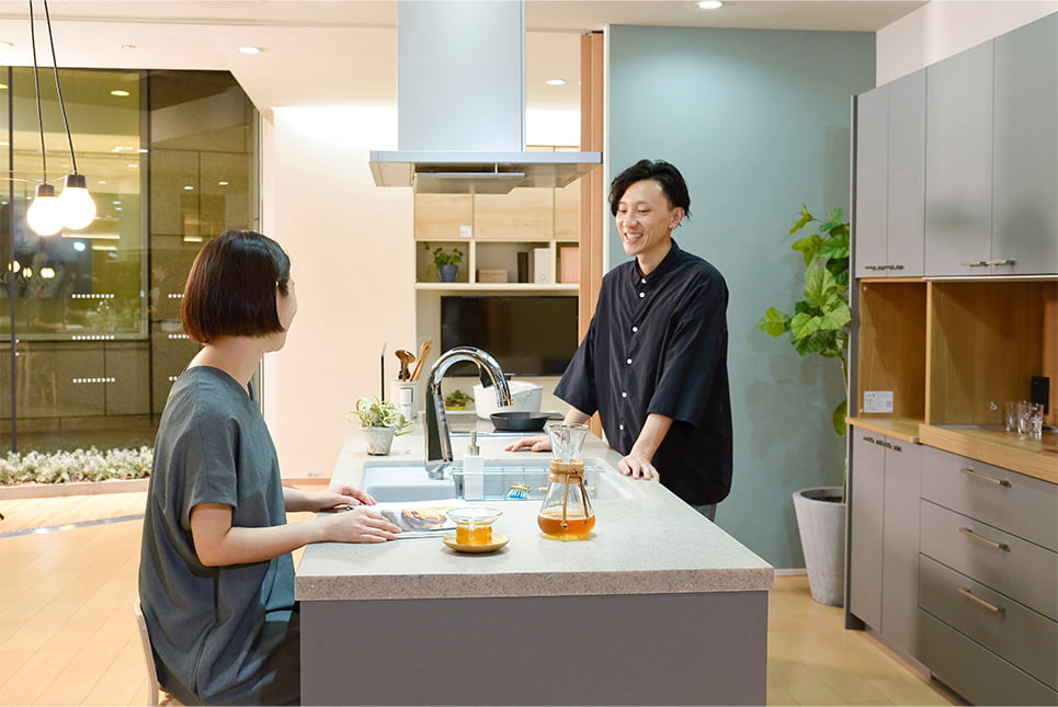 「遊びが仕事につながった」ふたりのように、家での過ごし方は多様になり、家事と仕事とプライベートタイムの境目がなくなりつつあるという方も増えています。「どこからでもアクセスできるし、いろんな使い方ができる。こんなキッチンなら、それぞれの家族に合ったスタイルで過ごせそうですね」。