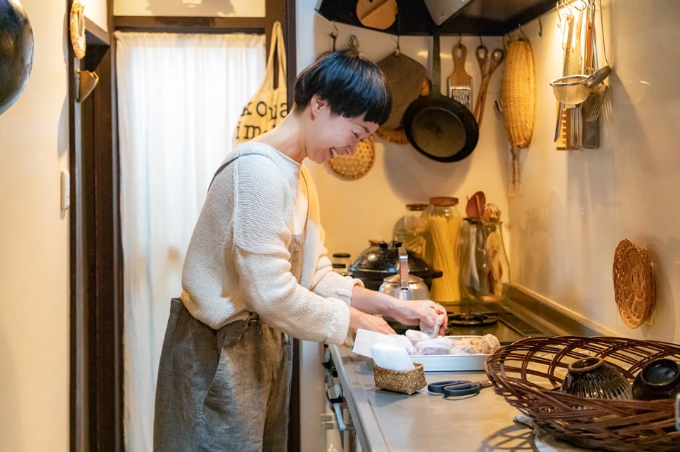 整った住空間と、手づくりを軸にしたライフスタイルからは“ていねいな暮らしぶり”が感じられますが、意外にも美濃羽さんは「もともとはずぼらで面倒くさがりなんです」と話します。古い建物ゆえの不便さに加えて、家事への苦手意識や育児、仕事……。慌ただしい日常を美濃羽さんらしいリズムで歩んでいけるようになったのは、自分の性格やライフスタイル、住まいに合わせて試行錯誤を重ねてきたから。