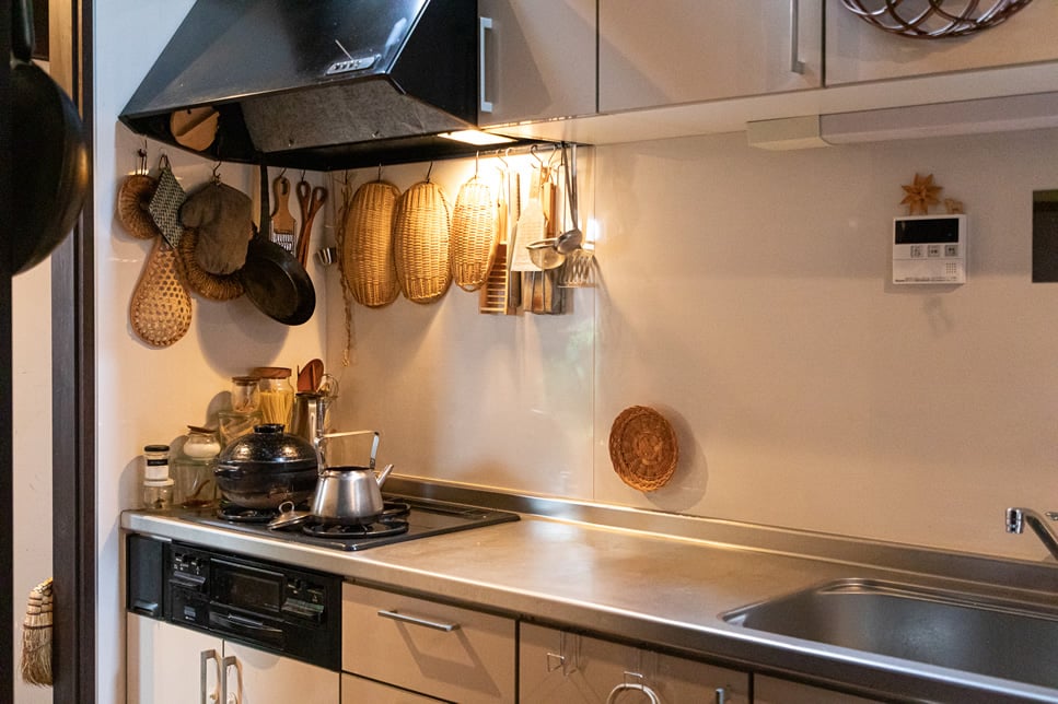 手間も気持ちも楽にする工夫として、“持ちものの選択”も大きなポイントに。あって当たり前と捉えがちなものでも、自分に必ずしも必要とは限りません。美濃羽さんが試したのは、洗い桶や生ごみカゴ、ごみ箱を持たない暮らし方。結果は大成功でした。「なにか不便を感じることがあったとき、便利アイテムをプラスするのではなく、ときにマイナスしてみると意外な解決法が見つかるのかもしれません」。ここでも発想の転換が美濃羽さん独自の“らくちん”を生み出しています。