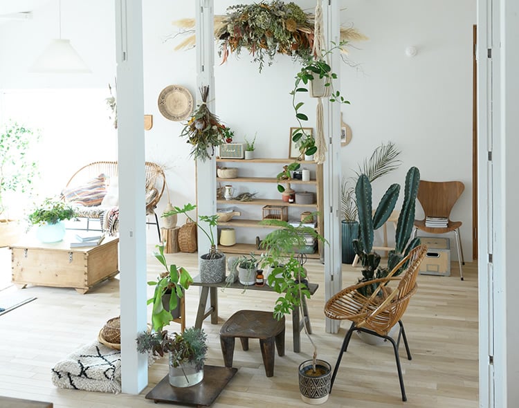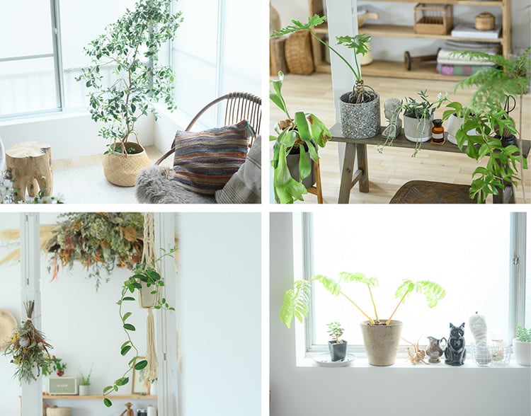 切り花に鉢植え、ドライフラワーなど、さまざまな植物をインテリアに取り入れていますが、その際大切にしているのは“植物それぞれの特性に合う見せ方”。
