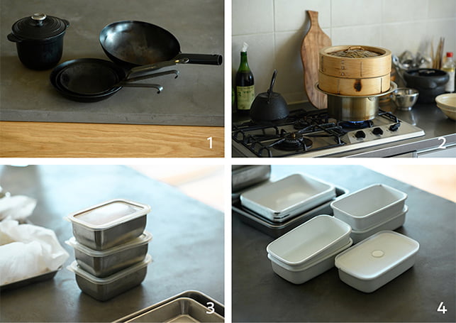 「鍋やフライパン、蒸籠(せいろ)は丈夫で質の いい素材を選べばずっとつき合えます。長持ちする分、多少値が張ることは覚悟して購入しています」。