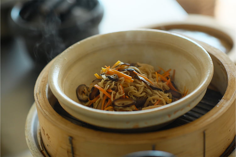 切り干し大根を煮込むのにも蒸籠を使っているワタナベさん。蒸気であたためたやさしい味わいと食感のよさは、鍋での調理とはひと味違います。
