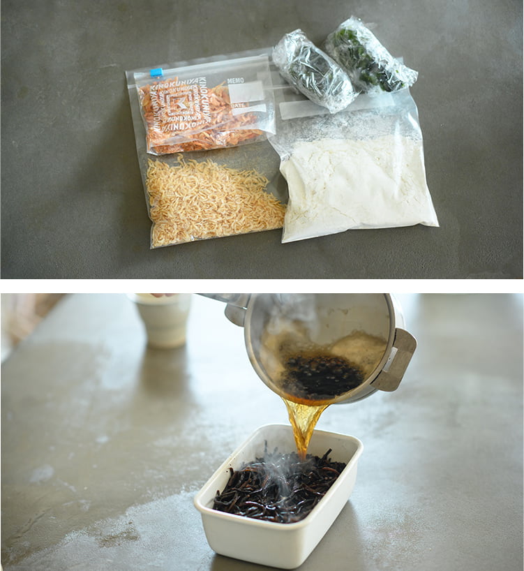 これは、戻す手間を一度にまとめ、食材を劣化させずおいしくいただくために実践しているひと工夫。
