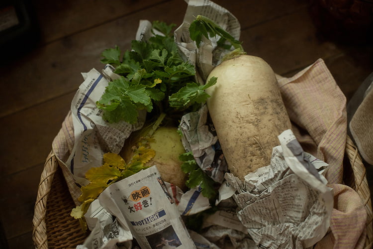 - 夏は毎日、冬は少なくても2日に1回は、底からしっかりかき混ぜる。終わったら野菜が見えないようにぬかを被せ、空気を抜くように押さえてふたをする。山田さんのお宅では、通気性のいい和紙をふたがわりに使用。