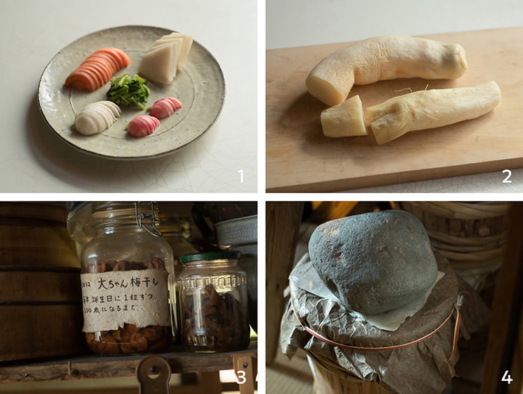 - 梅干しも定番の保存食。写真は小学1年生の長男が生まれた年に作り、毎年誕生日にひとつ食べることにしているもの。