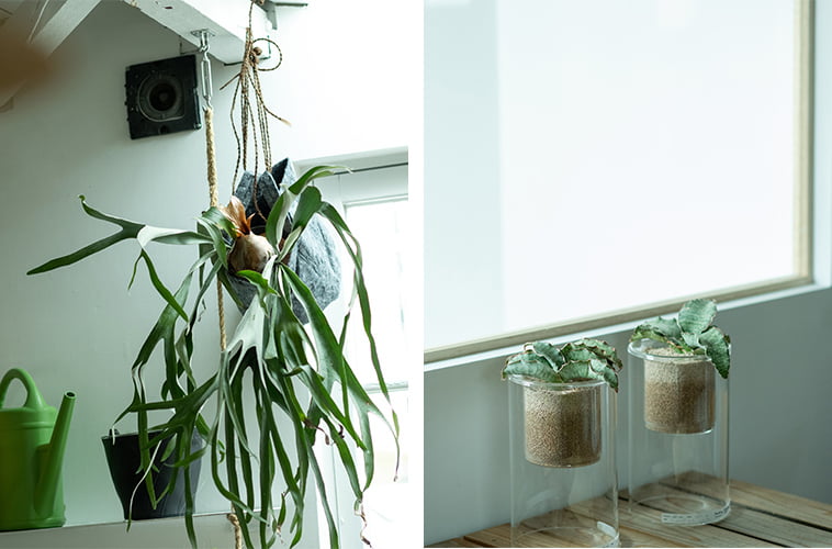 植物と雑貨やインテリアアイテムの組み合わせにも、松田さんならではのセンスとアイディアが光ります。