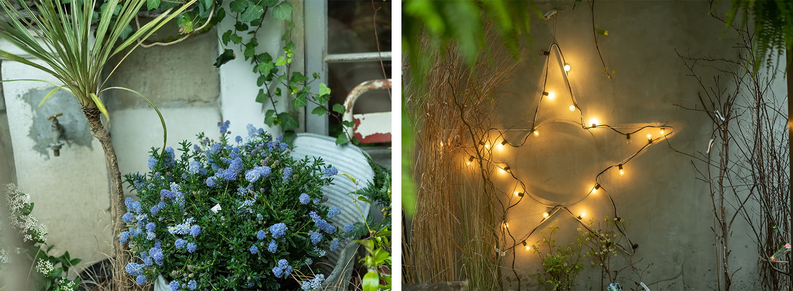 植物と雑貨の足し算だけでなく、引き算も念頭に置いて、それぞれの魅力を引き立て合うコーディネイトを実践しています。