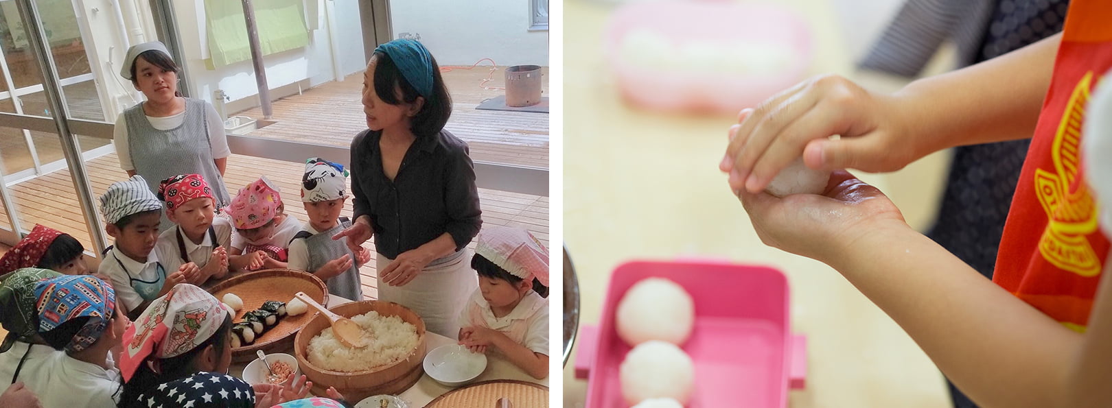 ごはんが炊き上がる音や匂い、にぎったごはんの触感、塩の辛さや甘さ……。作り始めれば皆夢中になり、五感をフルに使いながら楽しみます。