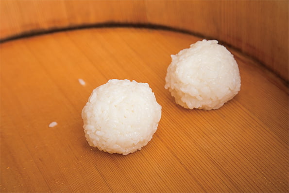 - ごはんは冷めるとデンプン化し、粘りが出て米粒どうしがくっつき、固まってしまいます。ポイントは“ちょっと熱いけれどにぎれる”程度になったら、冷めないうちに一気ににぎること。
