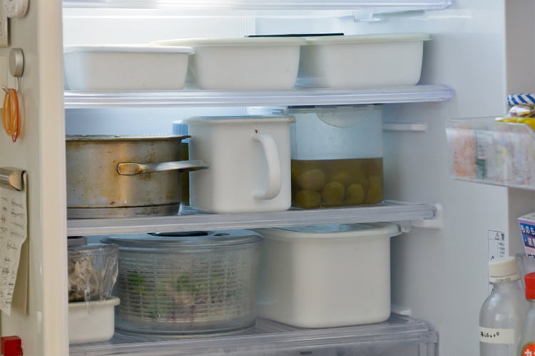 冷蔵庫の中は白いホーロー容器に