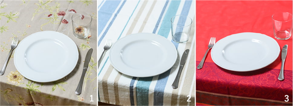同じ器を使っても、組み合わせるテーブルクロスの色柄によって雰囲気は一変。ペレさんは、大切な食卓での時間を豊かに彩るアイテムとして色数豊富に揃えています。コーディネイトを考える時は、季節や料理のイメージ、こぼしたときに染みが目立たないかどうかも考慮しています。