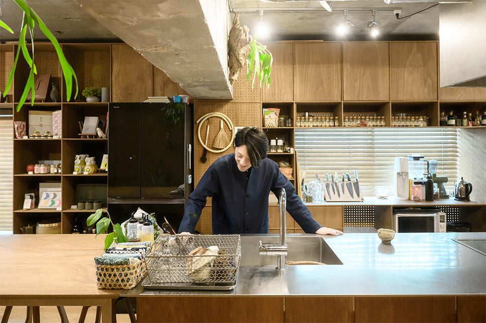 リノベーションのプランニングを進めていた時、豪希さんと桃子さんがキッチンについて出した要望は、「料理教室を開くことができる空間」、「たっぷりしまえるパントリー」のふたつ。当初からホームパーティや料理教室を開くことをイメージしていたため、生活感を抑えつつ、料理がしやすい機能的な空間をリクエストしていました。