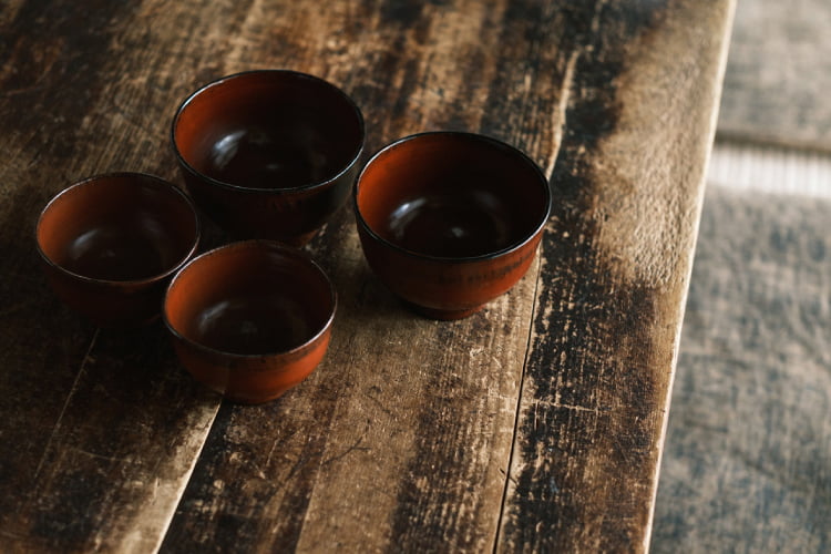 「清水の舞台から飛び降りる気持ちで買いました」と見せてくれた漆器。松山の漆作家の作品で、使うほどに味わいが増して持ちもよく、“一生物”を実感しているそう。
