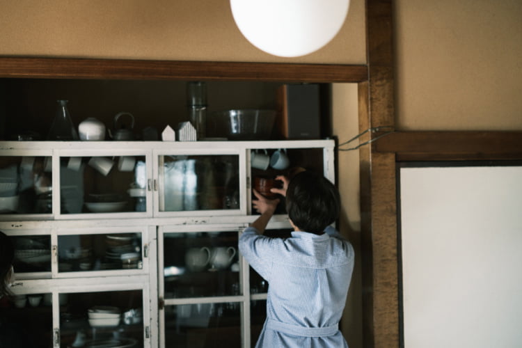 50代となった今も、お気に入りの食器棚に器がずらりと並ぶ様子は変わりませんが、器は半分以上手放したそう。