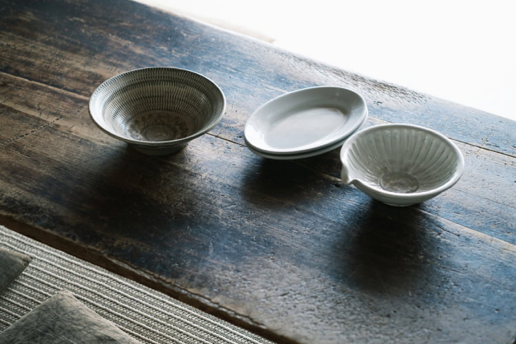 「今愛用しているのは、昔ながらの素朴な民芸の器や量産のプロダクト。作家やブランドにとらわれず日常の料理に合って気軽に使えるものをと考えるようになり、少しずつ入れ替えるようになりました」。