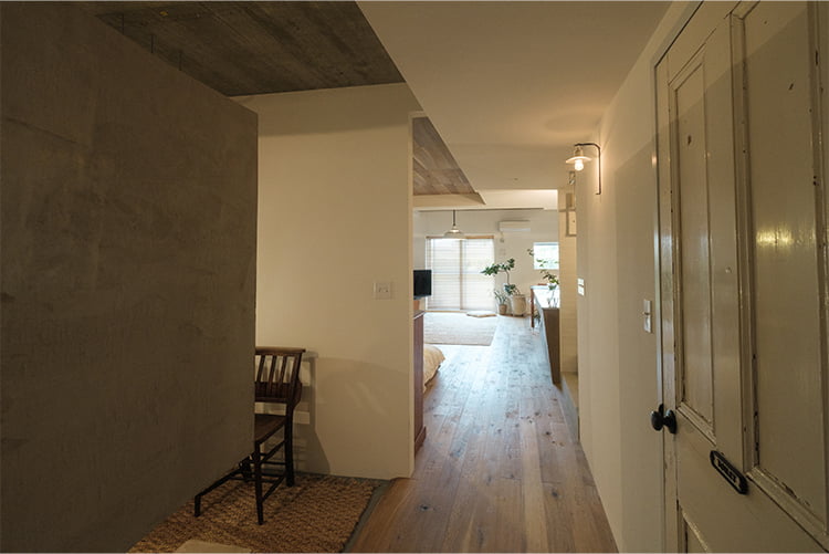 エントランスから一歩中に入ると、抜け感が気持ちいい空間が広がります。扉がないのも解放感のポイント。