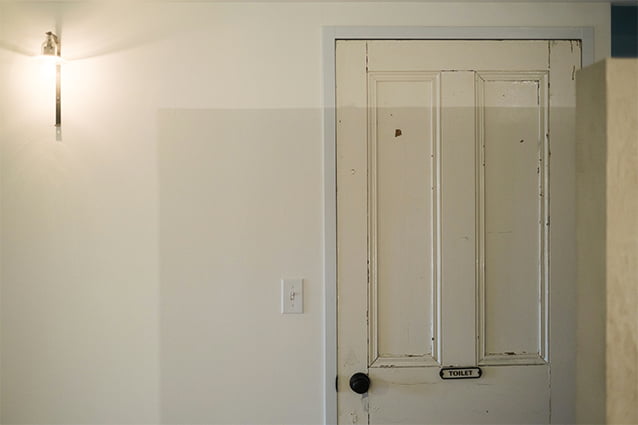 随所で目を引くのが、壁づけの棚やスイッチプレート、ドアなどアンティークの建具やパーツ類。内装材と相まって、インテリアの雰囲気を盛り上げています。