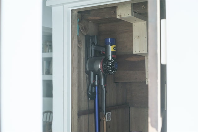 玄関とリビングの間にある階下収納は、もともとあったスペース。掃除道具のほか、消耗品のストックなどの収納に重宝しています。ストックの買い足しに出かけた際、玄関からすぐ運べるのも便利。