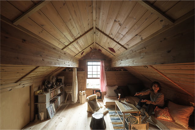 YURIEさんの暮らすログハウスは2LDK+屋根裏部屋。空間の広さや雰囲気に合わせ、目的やイメージを持って部屋づくりをしています。