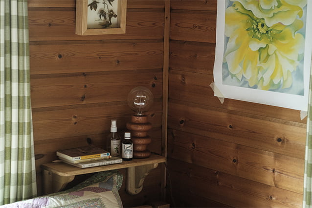 「家でもっとワクワクしたい」という発想でインテリアを整えているYURIEさん。最近新たに整えたのが寝室です。アーミッシュの映画を観てからずっとキルトが気になっていて、長い家時間が続くこの機会がチャンスと、アーミッシュキルトを主役に据えたカントリースタイルで部屋づくりをしました。ぬくもり感あふれる雰囲気のなかでゆっくりお茶を飲み、読書を楽しむことをイメージしていて、壁面にはカップを置ける棚を新たに設えています。