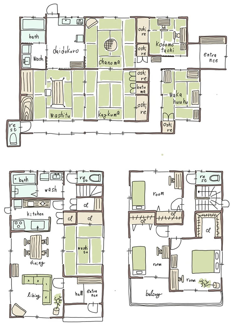 LDKという空間が生まれてから、家事動線がよりスムーズになり、共働きの家庭の助けにもなってきました。また、リビング学習のスペースをつくったり、本棚を設けたりと、教育の場も担うように。家に求める役割の変化は時とともに変容し、間取りにも反映されています。