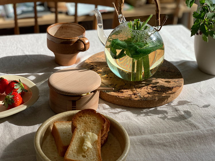 ところが、外出の自粛や妊娠、出産が重なり、これまで経験したことがないほど自宅で過ごす時間が増えました。ゆっくりと過ごした妊娠期間、子育てで慌ただしく過ごすようになった産後。どちらにおいても、長い家時間で心の潤いとしているのが、食卓につくひととき。
