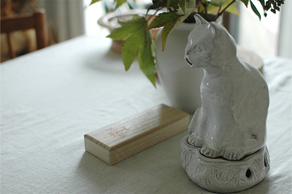 「アロマやハーブはゆっくりしたいとき、お香は集中したいときに使っています。どちらもリラックス効果が期待できるとされていますが、お香は、気持ちを鎮静しながらも集中力を高めるように感じるので、仕事のときに活用しています」。