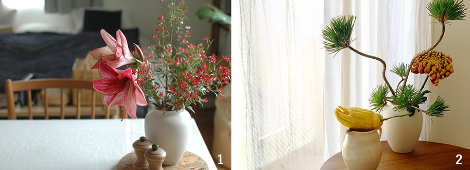 思うように外出しづらい状況が続く今、その志向は一層強まっています。視覚的な癒しだけでなく、葉を整えたり、花を切り分けてバランスよく配置したりと、生ける作業そのものも好きで、大切にしている時間。いいリフレッシュになっているそうです。