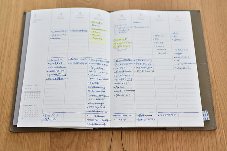 Emiさんのスケジュール管理は2本立て。スマホアプリでは会社や家族で共有すべきことを管理していますが、自身でこなすべき細かいタスクについては手帳に手書き派。日曜日の夜の5分間を使ってスマホアプリを見ながら1週間のto doリストを作成するのが、ルーティーンとなっています。仕事、プライベートなどジャンル別に書き分けて明確に把握し、1週間がスムーズに進むように整理します。