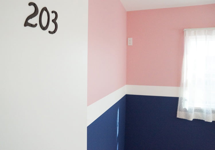 空間のアクセントとして人気の高い色壁。その延長として、数色を使ってデザインし、より印象的な部屋づくりを楽しむ方も増えてきているそう。写真は壁をセパレートに色分けをしてデザイン。個性豊かで楽しい演出になっています。