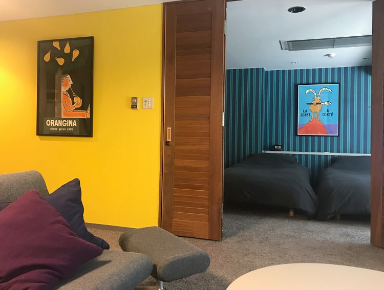 隣り合う部屋との色の取り合わせにも配慮すると、住空間の雰囲気がさらにアップします。秋山さんの河口湖にある別宅では、イエローの色壁と奥の部屋の壁紙をコーディネイト。奥行とインパクトのある壁面を演出しています。