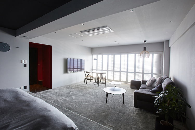 新築やリフォームのタイミングでない限り、床の色はなかなか変えづらいもの。壁に採用したい色と床の色相がマッチしない場合、ラグやカーペットで床面をカバーするという手も。ラグなら手軽に床面の印象を変えられるのでおすすめです。