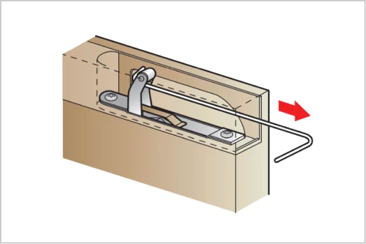 ソフトクローズの開口部にリセット治具を挿入する