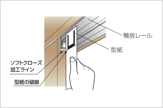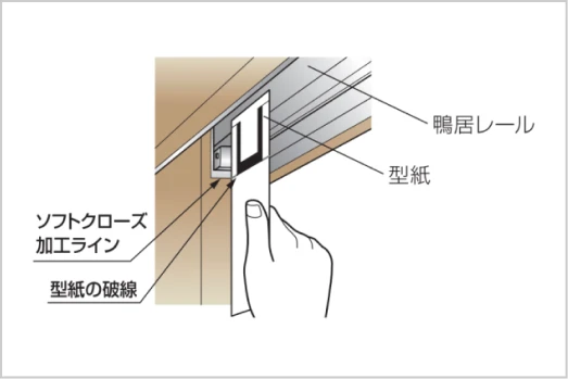 ソフトクローズの加工ラインが型紙の破線と合うように調整する