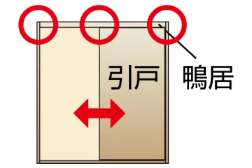 - 引戸を開いた時と閉じた時の戸先・戸尻のすべてを確認してください。
