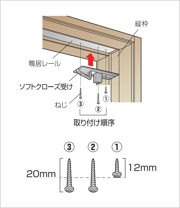 - 受け部材の取り付ける向きを間違えないでください。