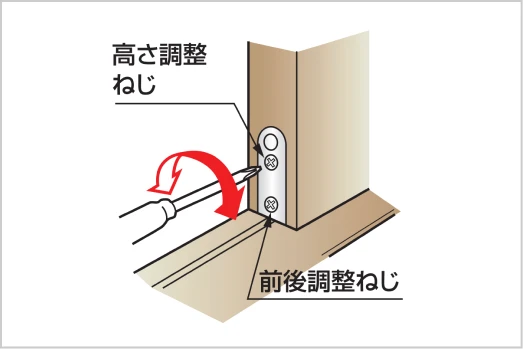 受け部材交換後は、必ず引戸の高さを確認・調整してください。