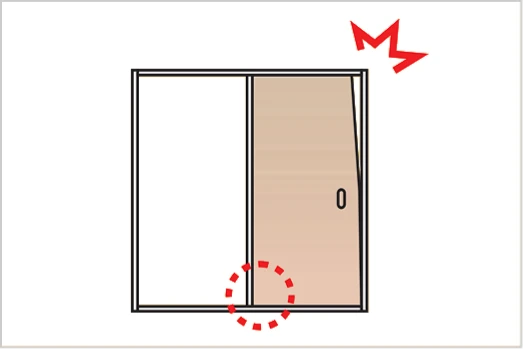 かかりが少ないと、引戸本体が転倒してけがをするおそれがあります。