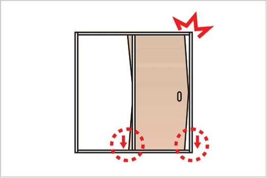 引戸本体が引き込まれる直前に傾いてしまう時