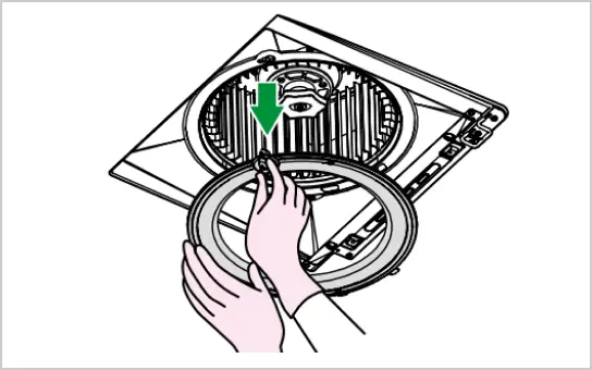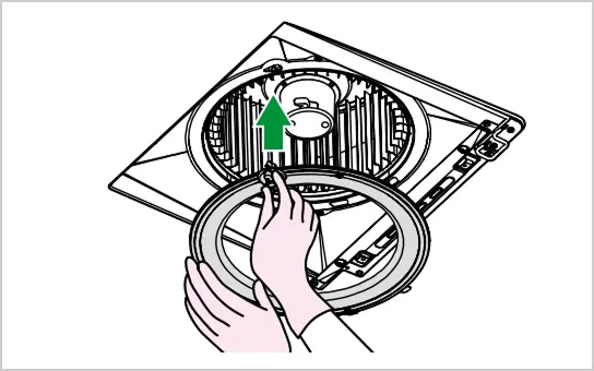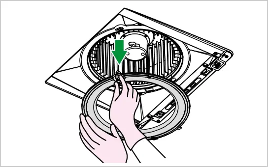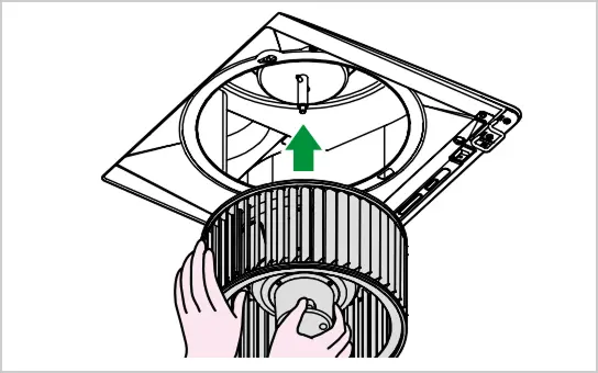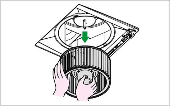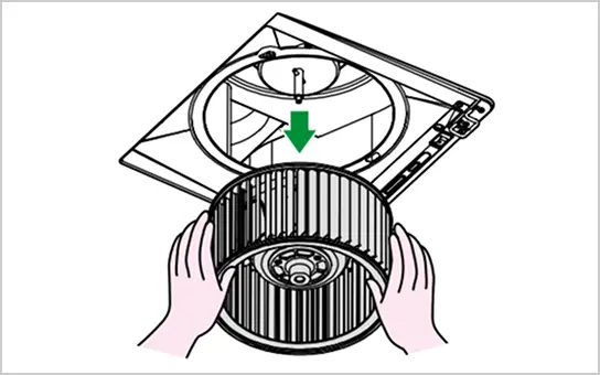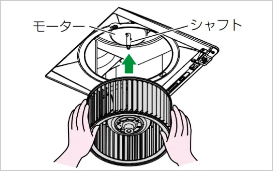 羽根は手で支え、落下しないようにゆっくり取り付ける。