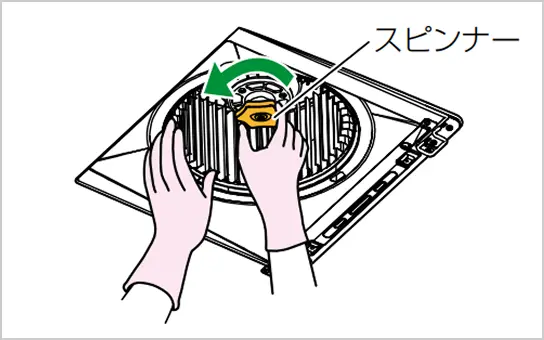 スピンナーを左回り(反時計回り)に回して羽根を取り付ける。