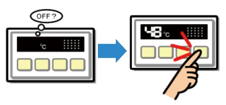 給湯器の電源を入れ、給湯器の温度設定値を約10℃高くしてください。