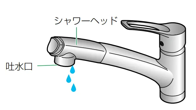 止水したときに、シャワーヘッド、吐水口から水滴が落ちることがありますが、これは、シャワーホース・散水板の残留水です。異常ではありません。