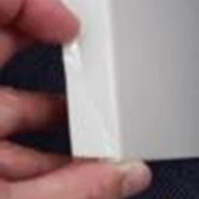 1 アルコールを湿らせたウエスでシート裏面と基材全面の汚れをふき取り、扉基材の端部に両面テープを貼ります。(扉シートの角部に注意してください。)