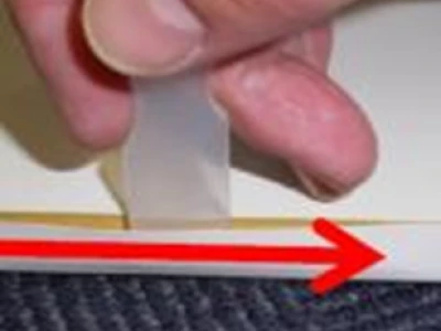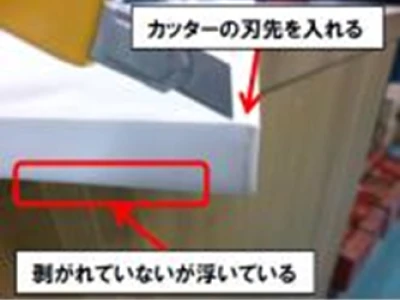 端にカッターナイフを挿入し、ゆっくりスライドさせて剥がしてください。