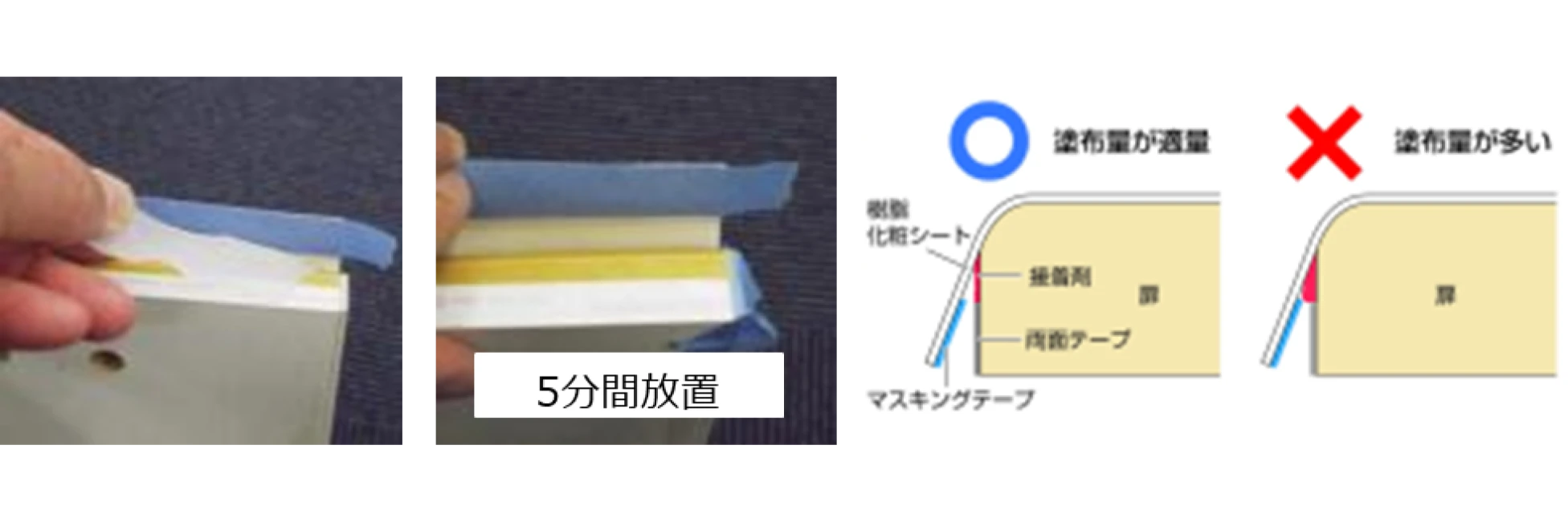 - 接着剤・両面テープは、作業性や接着性能面から必ず指定のものを使用してください。